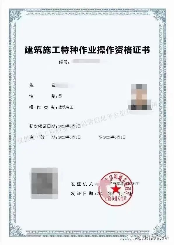 住房和城乡建设厅特种作业操作证书