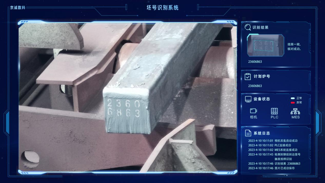 通过目标检测、OCR字符识别算法,识别炉前辊道的铸坯喷号字符,根据喷号识别结果,与轧制计划进行信息核对,保证入炉坯料实物与生产计划一致,实现了炼钢与轧钢信息正确真实的贯通,达到按支、根进行物料跟踪的目的。