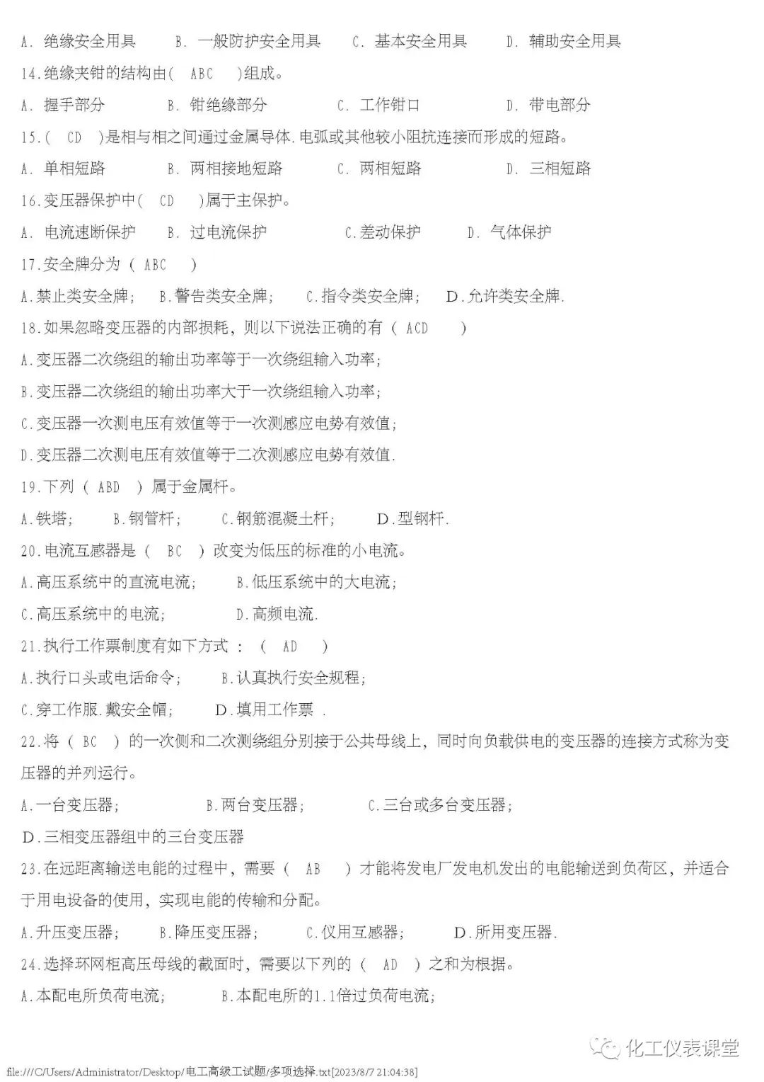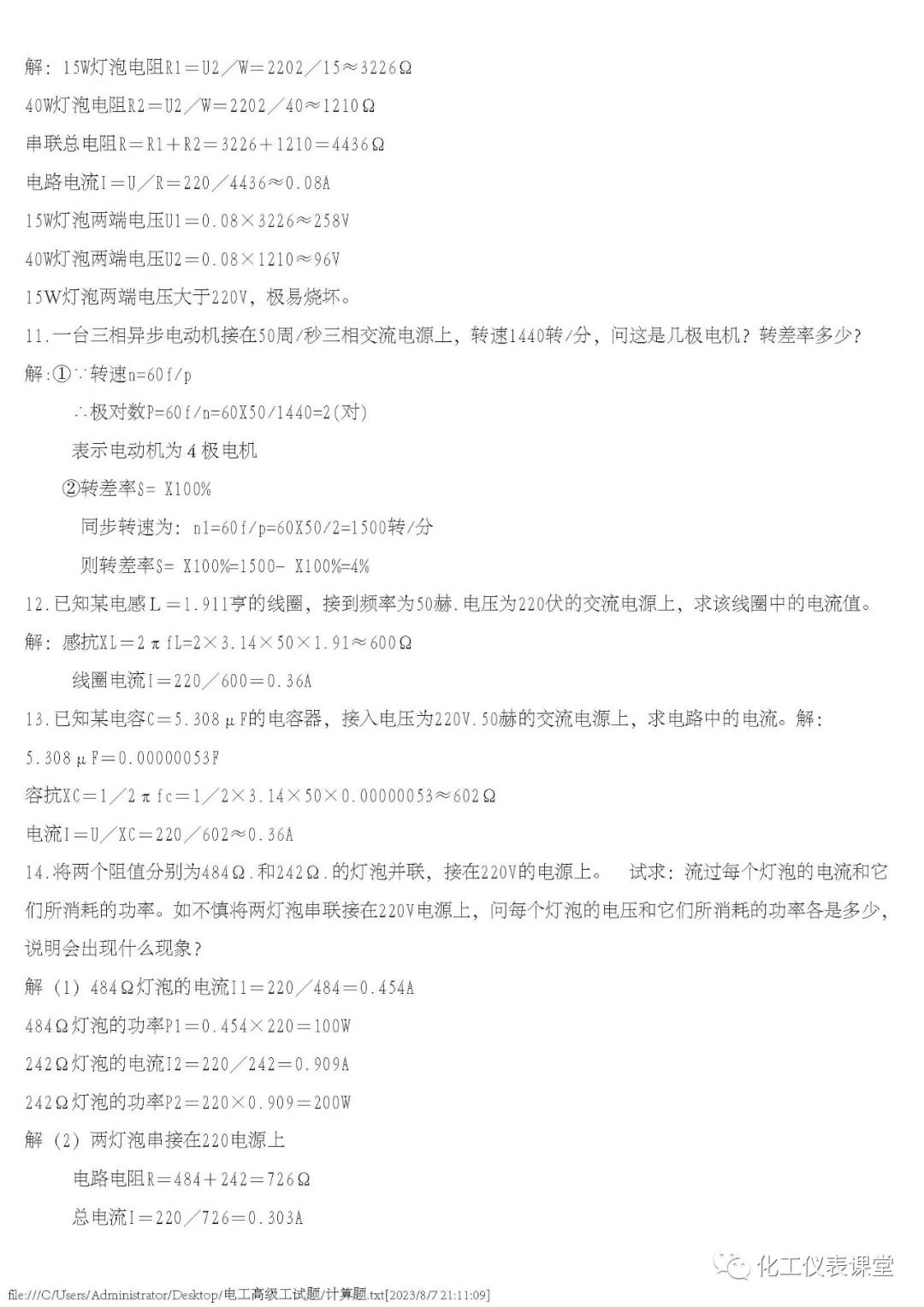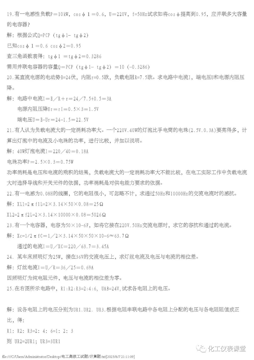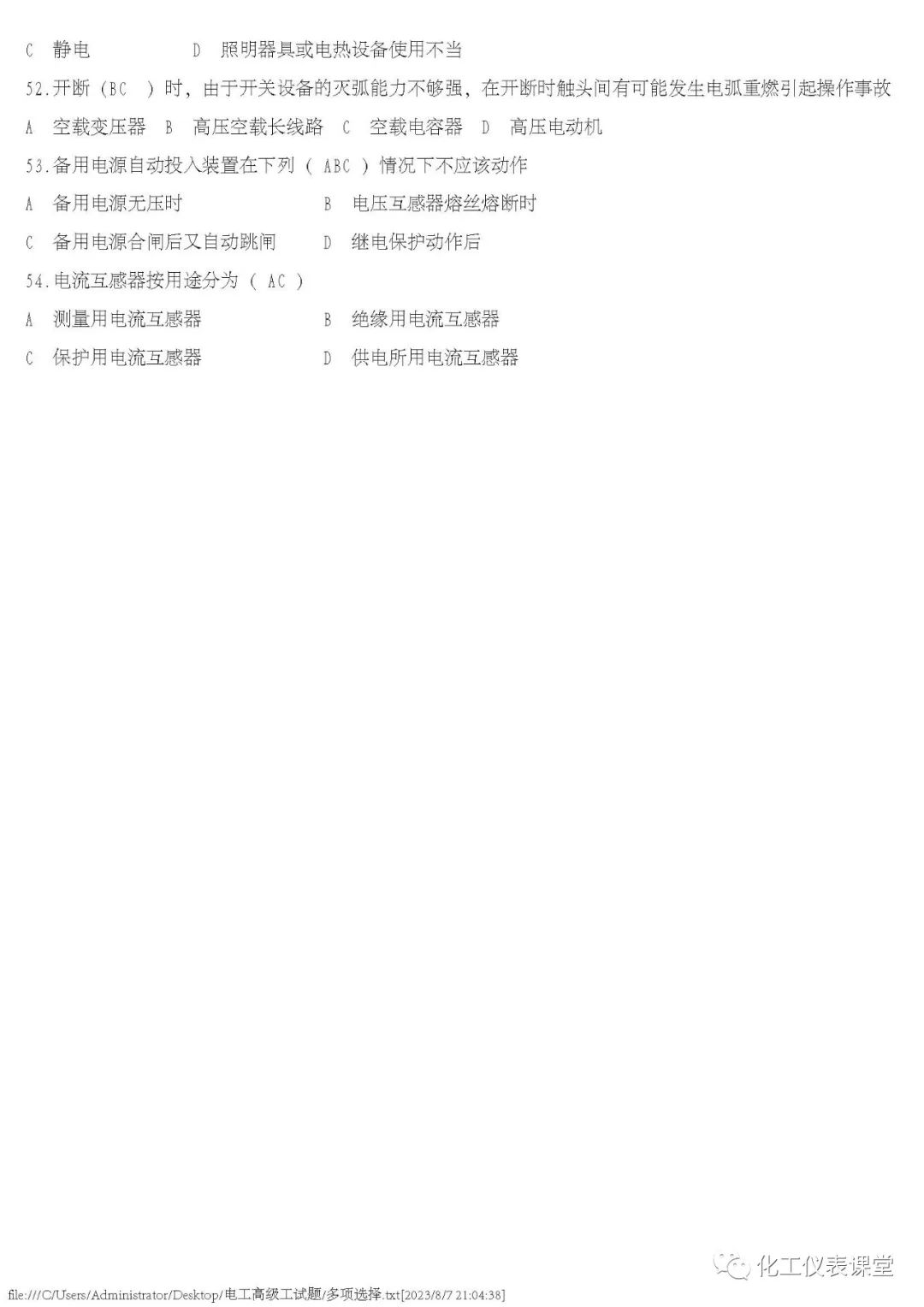 高级电工练习题(多选与计算)
