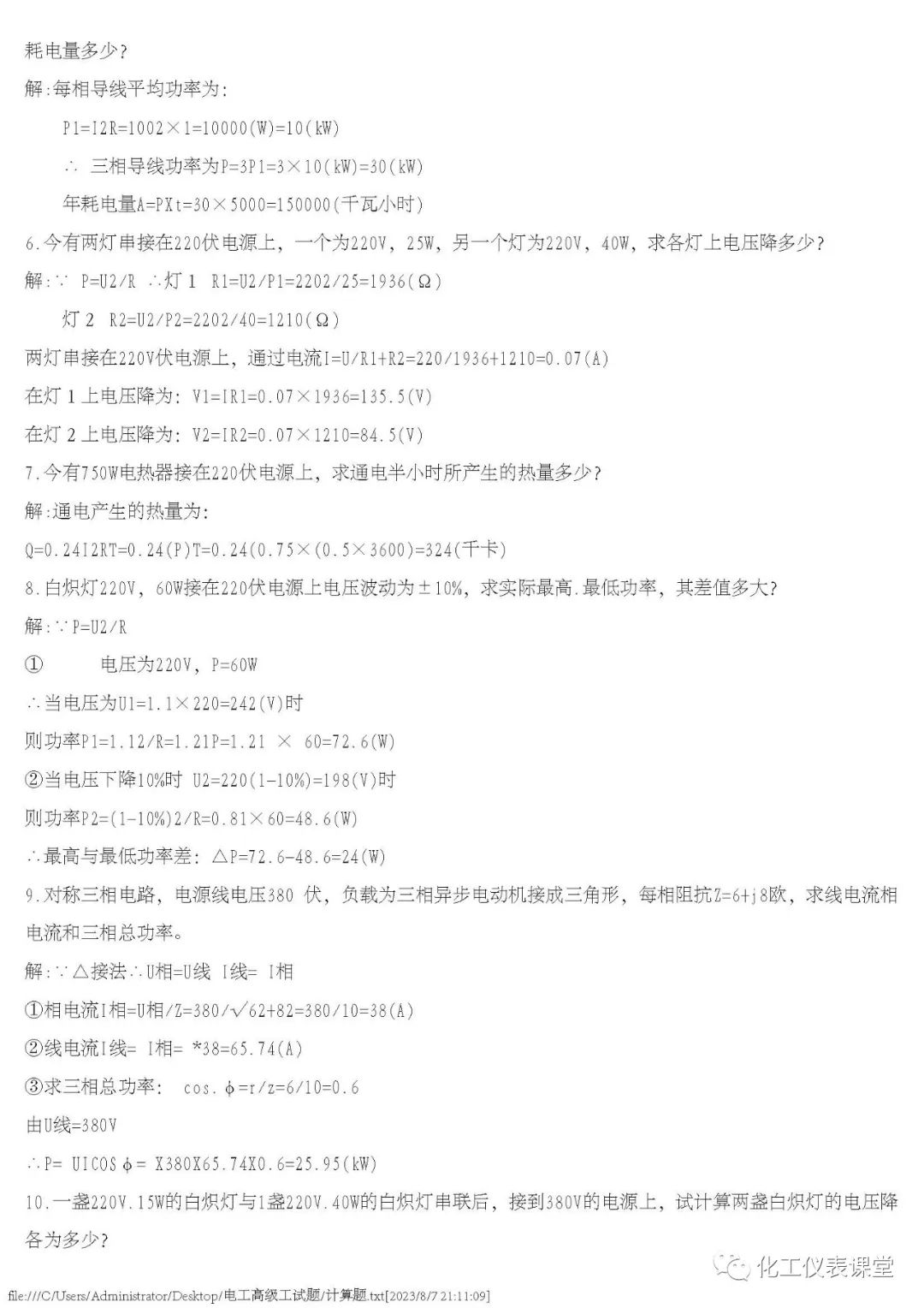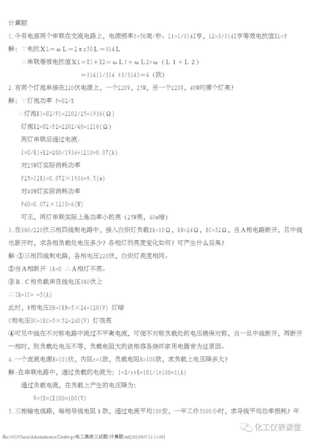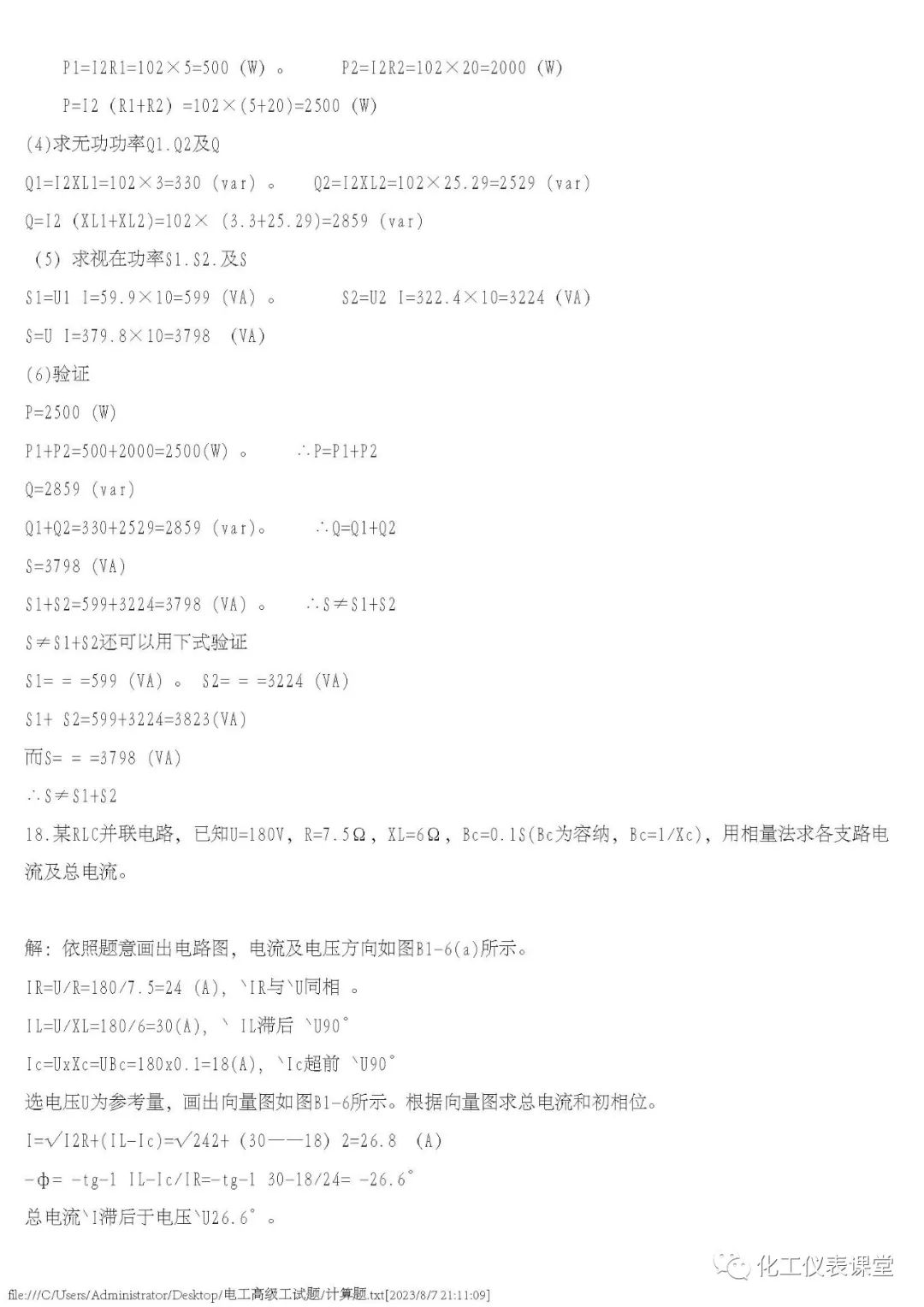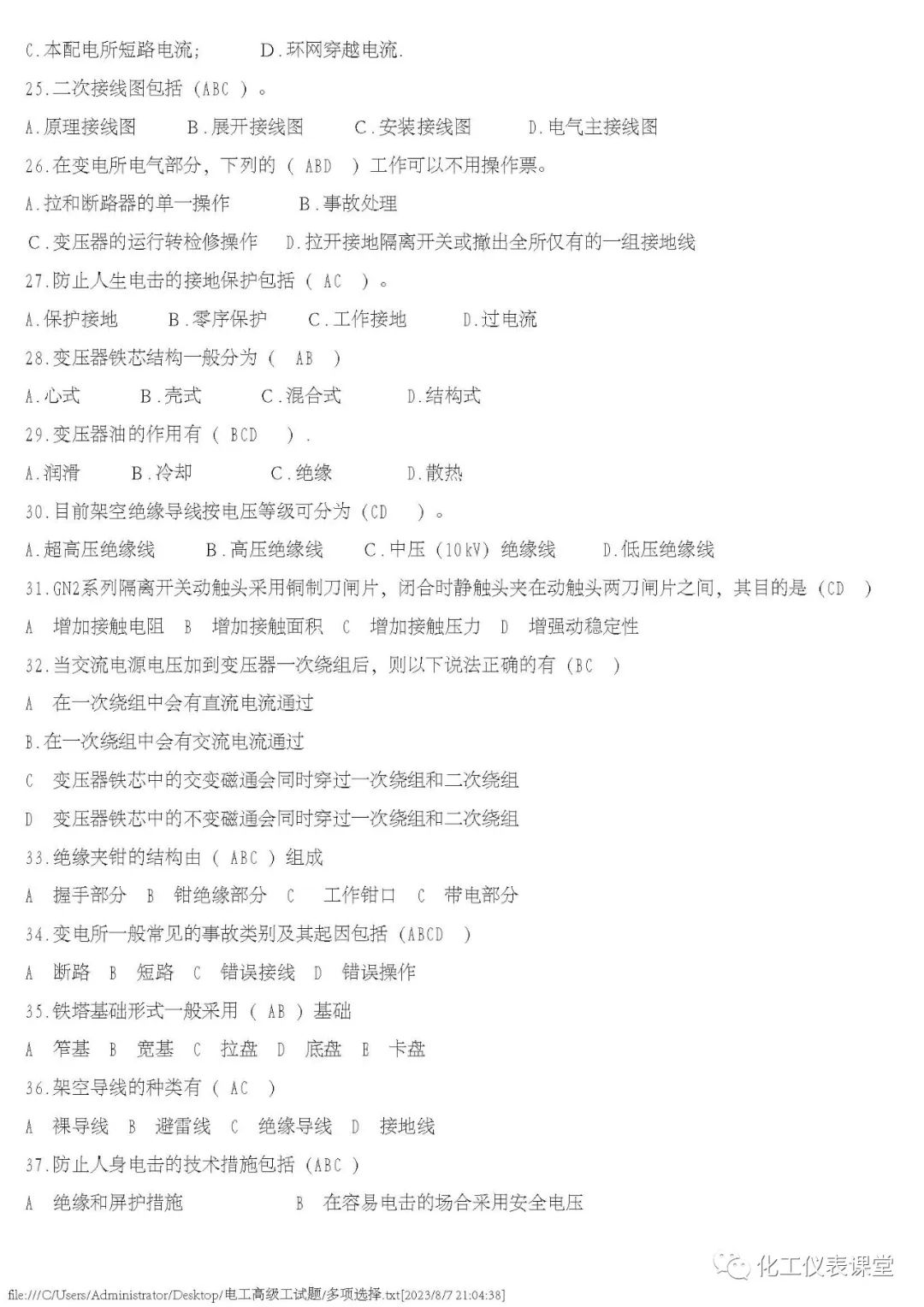 高级电工练习题(多选与计算)