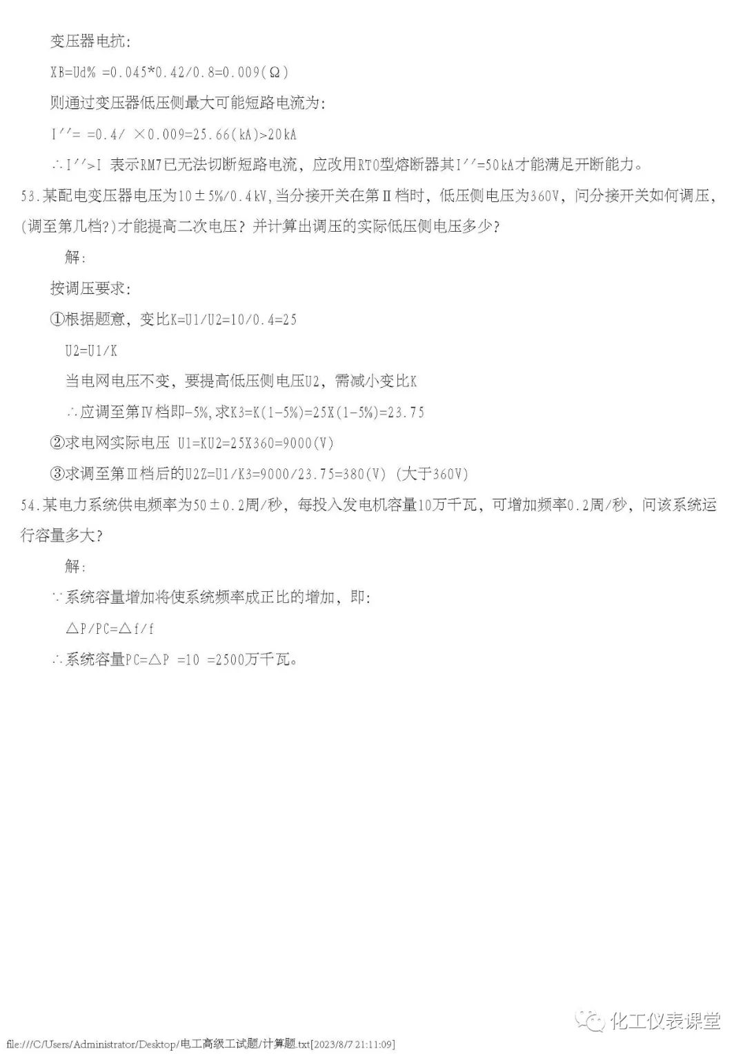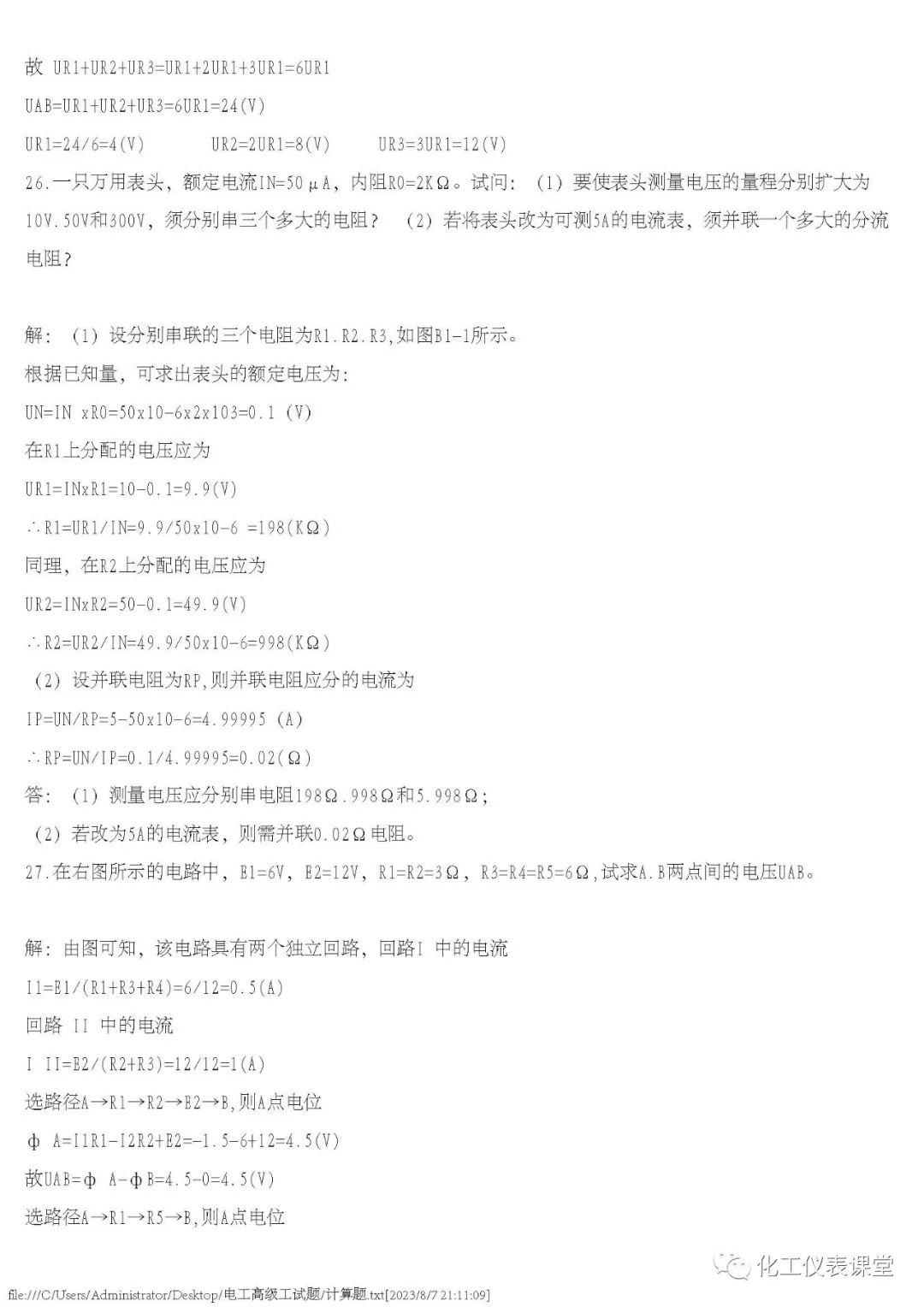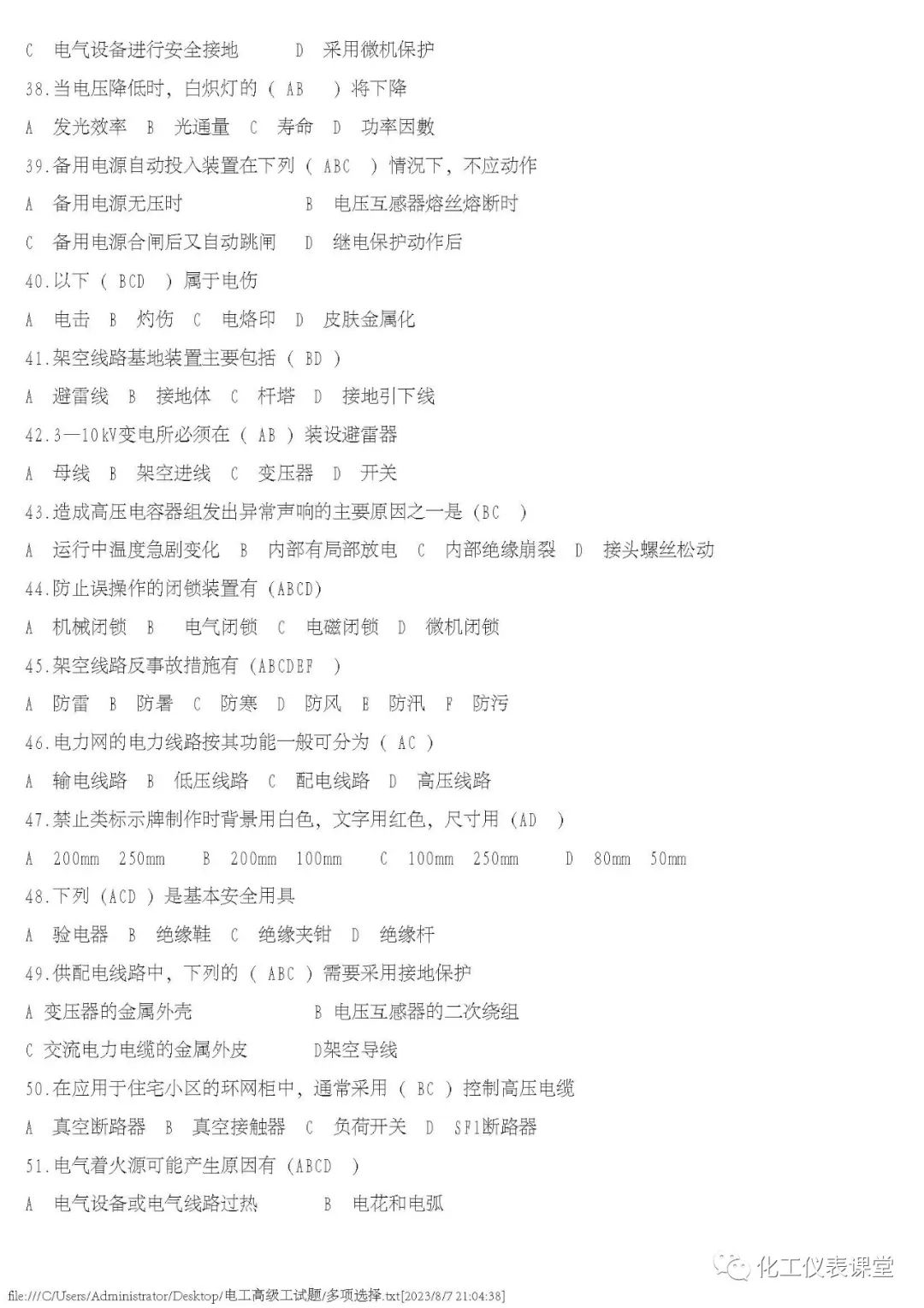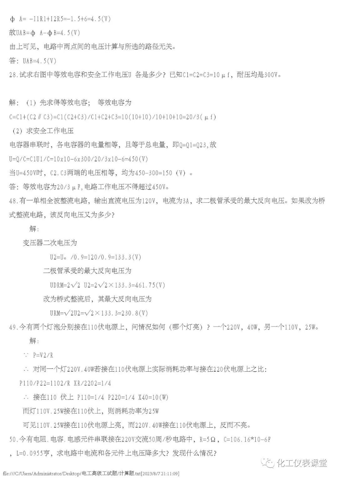 高级电工练习题(多选与计算)