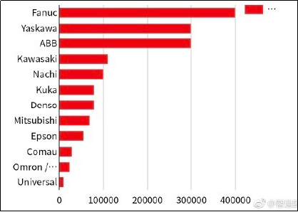 ↑↑世界著名工业机器人企业的装机量排名↑↑