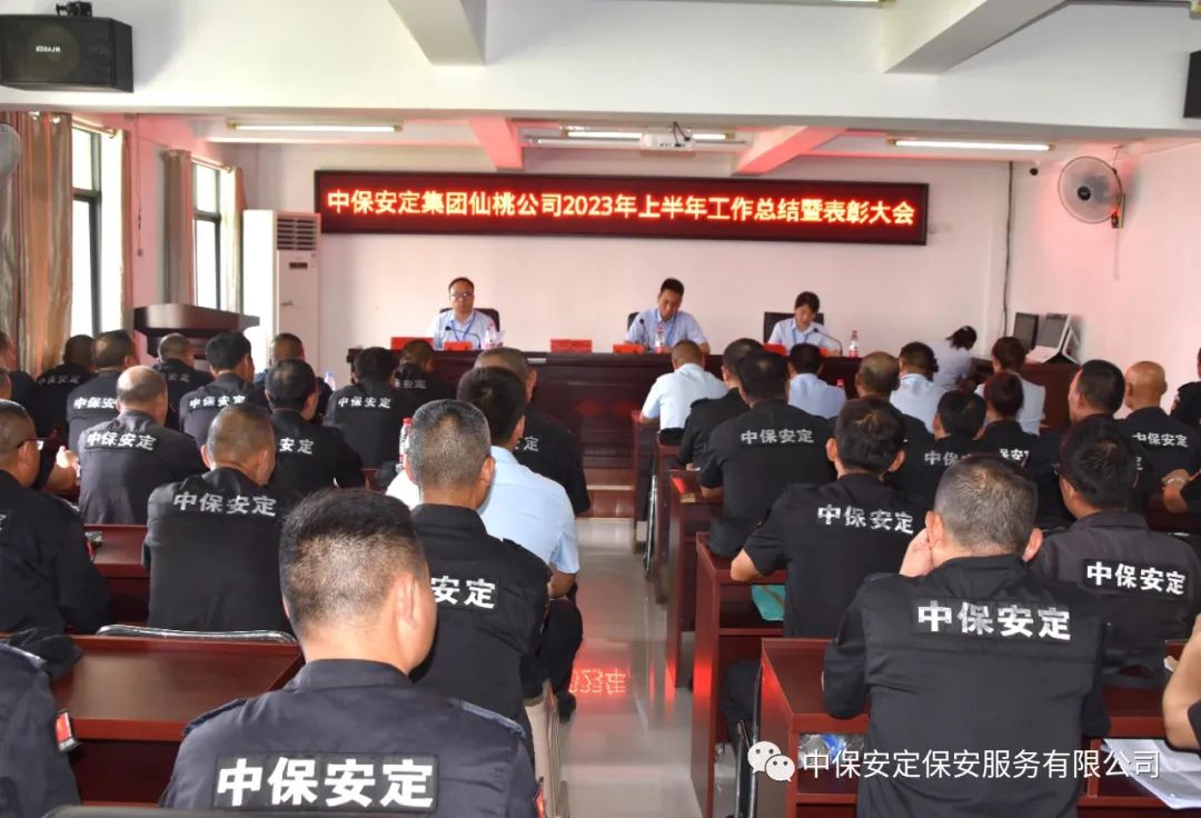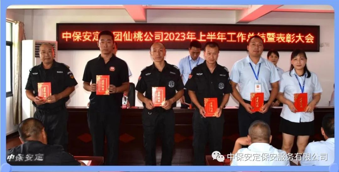 7月28日,中保安定(仙桃)保安服务有限公司2023年上半年工作总结暨表彰大会在公司四楼会议室隆重召开。本次会议旨在查找上半年工作中的成绩和不足,在总结与表彰中凝心聚力,激励全体中保安定人为公司发展再做新贡献。公司总办领导、机关管理人员、分队(班)长以上骨干和受到表彰奖励的各类先进个人参加会议。