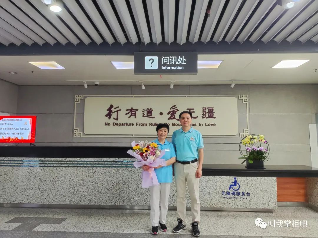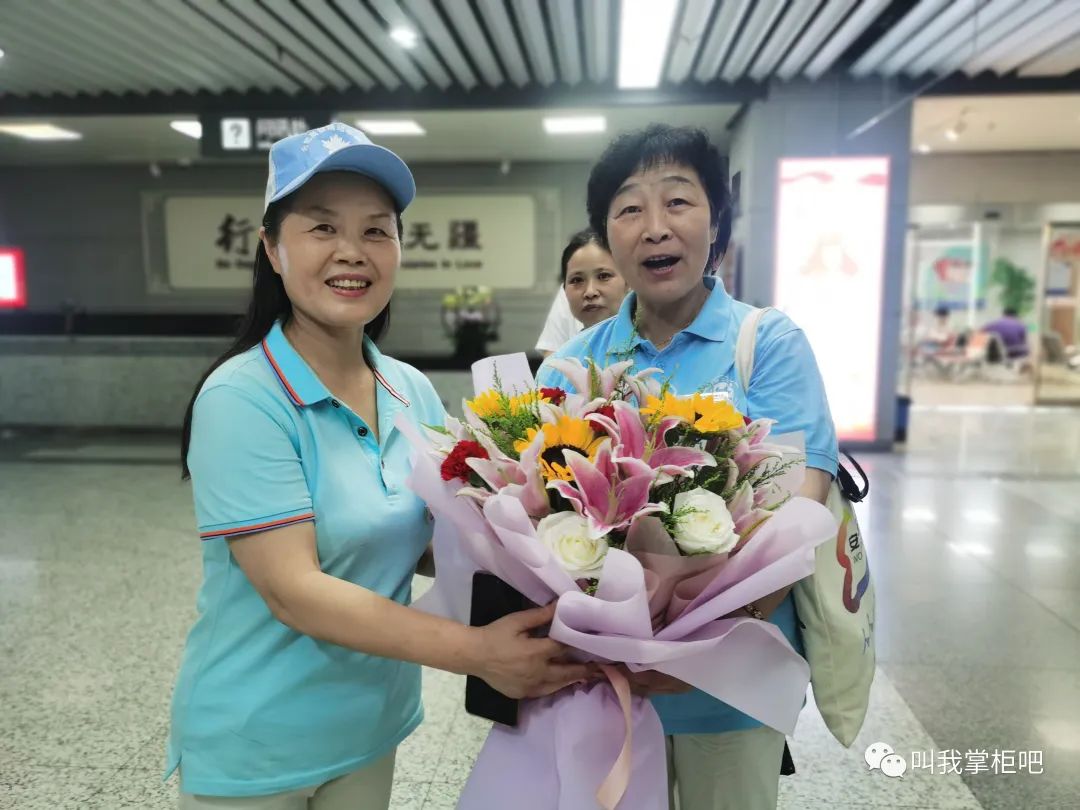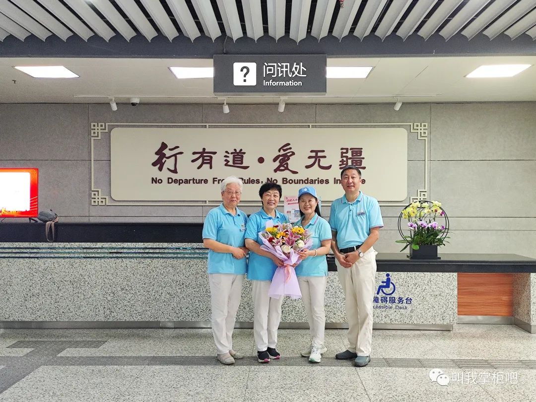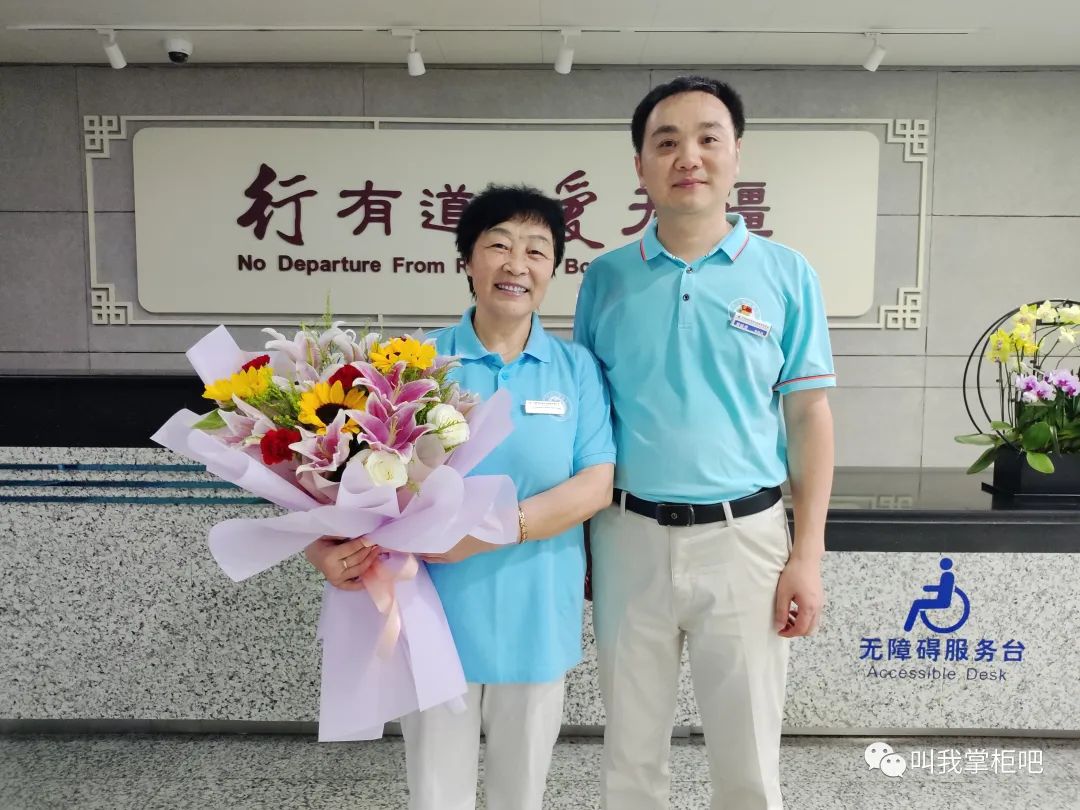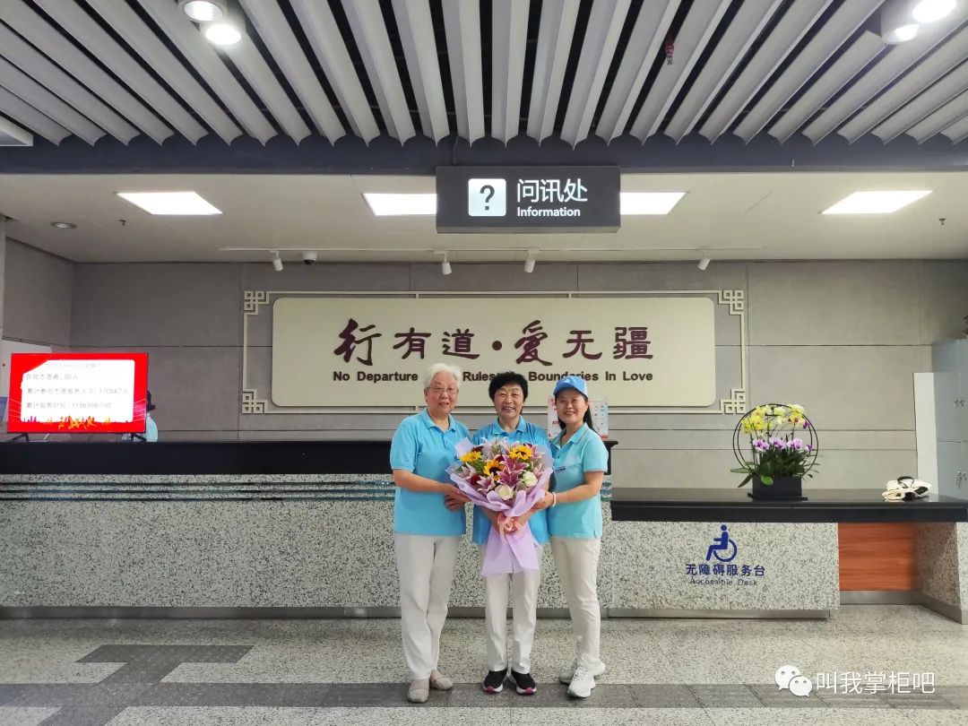 上午班到达厅岗前会,南站联合会会长裴惠丽、副会长张小莹和程勇为赵家云老师进行简短的仪式,感谢赵家云老师自2015年8月15日以来,八年来始终坚守志愿初心,践行奉献使命。赵家云老师是联合会第一批志愿者,当初她捧着一份爱心来到南站,将退休后的时间无私奉献给南站的旅客,同时开启退休后更加精彩的生活。八年来,联合会获得众多荣誉,得到社会普遍认可,离不开像她这样默默付出的志愿者们。