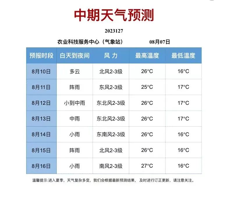 【气象服务】8月7日天气预报