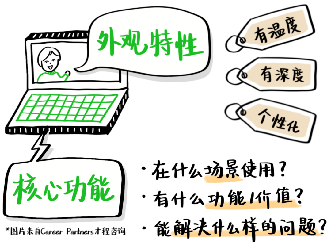 第二点,我们要能够看到这个产品,它具体有什么核心功能,在什么场景当中,它究竟有什么用?它能解决什么样的问题……