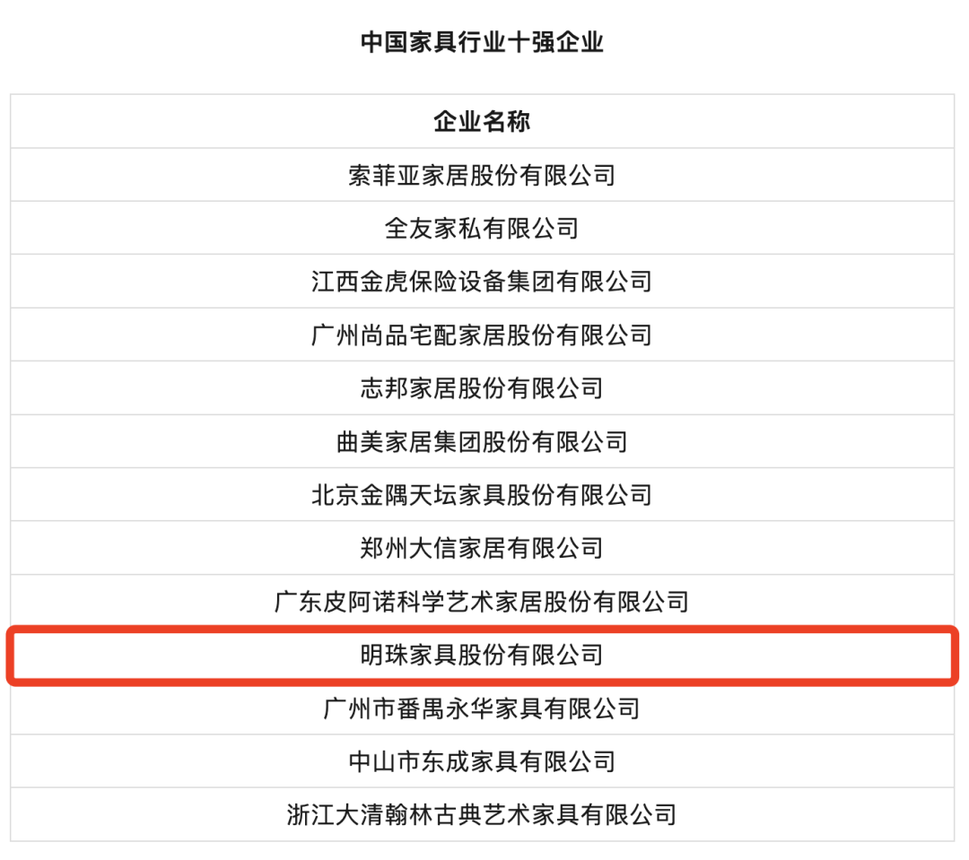 近日,以“迈向世界一流企业服务人民美好生活”为主题的中国轻工业百强企业高峰论坛在北京隆重举行。会上,中国轻工业联合会发布了2022年度中国轻工业二百强企业、中国轻工业科技百强企业及轻工装备制造五十强企业等评价结果,掌上明珠家居再次荣获「中国家具行业十强企业」荣誉!