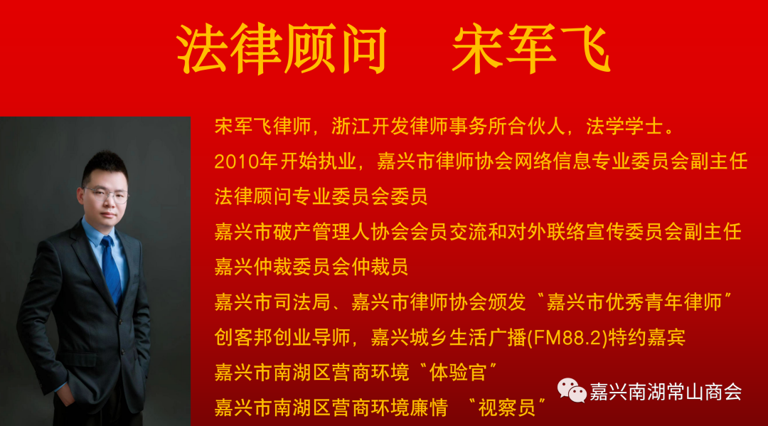 为了更好为会员服务,特聘宋军飞律师为商会法律顾问,曾冬芳为商会财税顾问,李滇为商会法律咨询专家,洪琳为商会保险顾问,朱骏为商会摄影顾问。