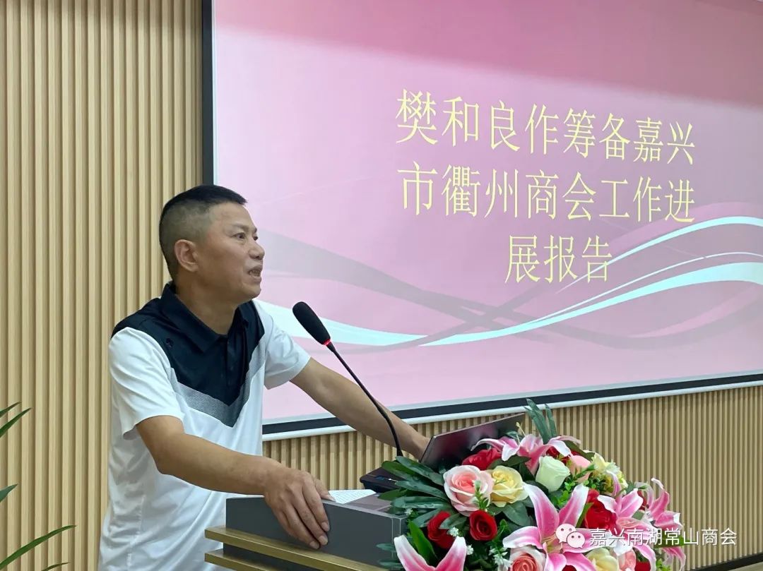 樊和良作筹备嘉兴市衢州商会工作进展报告,嘉兴市衢州商会(筹)由在嘉兴的衢州籍企业家以及那些对衢州有深厚感情的相关人士组成,常山作为衢州的一份子,应该积极参与,为衢州和嘉兴的经济发展贡献一份力量。