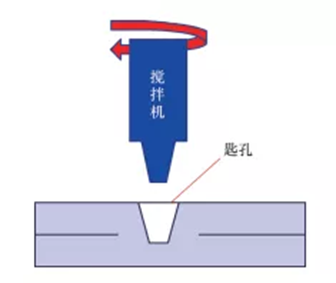 (1)传统直插式搅拌摩擦点焊包括扎入、旋转、拔出三个过程,焊接完成后在焊点处会留下一个匙孔。其焊接示意图如左图。
