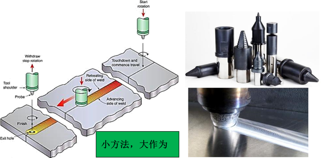 不旋转的轴肩不产生热量,表面热输入减小,工件厚度方向热量均匀。因此适合焊接导热率较差的材料。