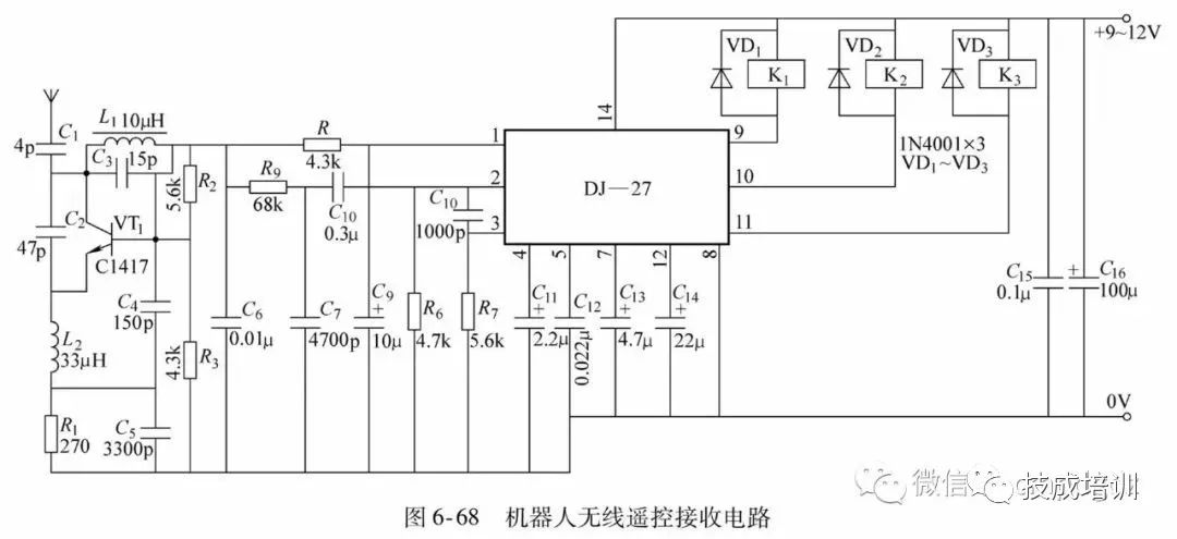 42.机器人无线遥控电路(以遥控距离为1000m的三通道IC型无线遥控器为例)