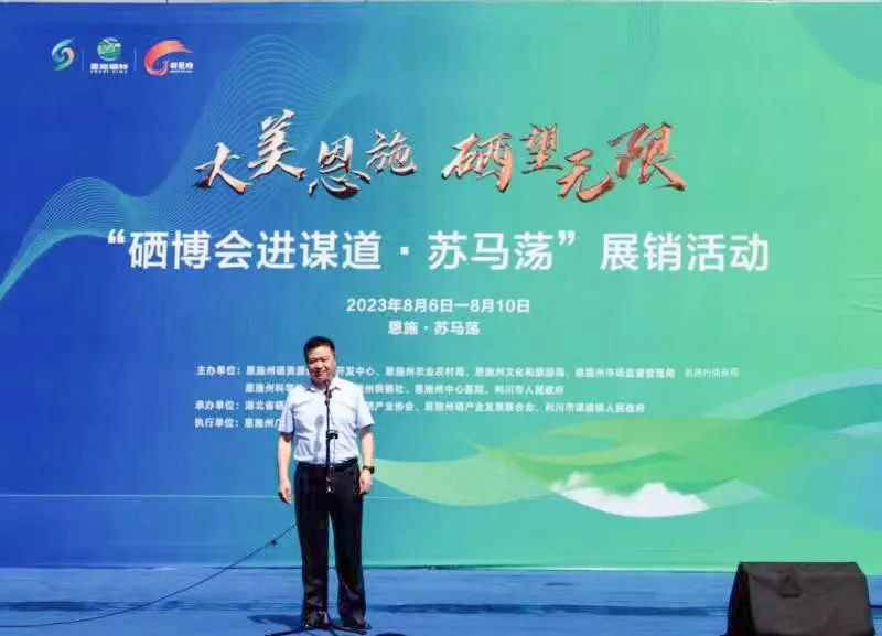 8月6日上午,“硒博会进谋道·苏马荡”展销活动在利川市谋道镇苏马荡拉开帷幕。本次展销活动以“大美恩施·硒望无限”为主题,由州硒资源中心、州农业农村局、州文旅局、州市场监管局、州商务局、州科协、州供销社、州中心医院与利川市政府联合主办。国家富硒农产品加工技术研发专业中心主任、武汉轻工大学党委副书记程水源,中国农业大学营养与健康系教授、博士生导师刘礼兵,中国农业大学营养与健康系副教授、博士生导师黄家强等领导和嘉宾出席启动仪式。副州长杨盛僚宣布活动启动。