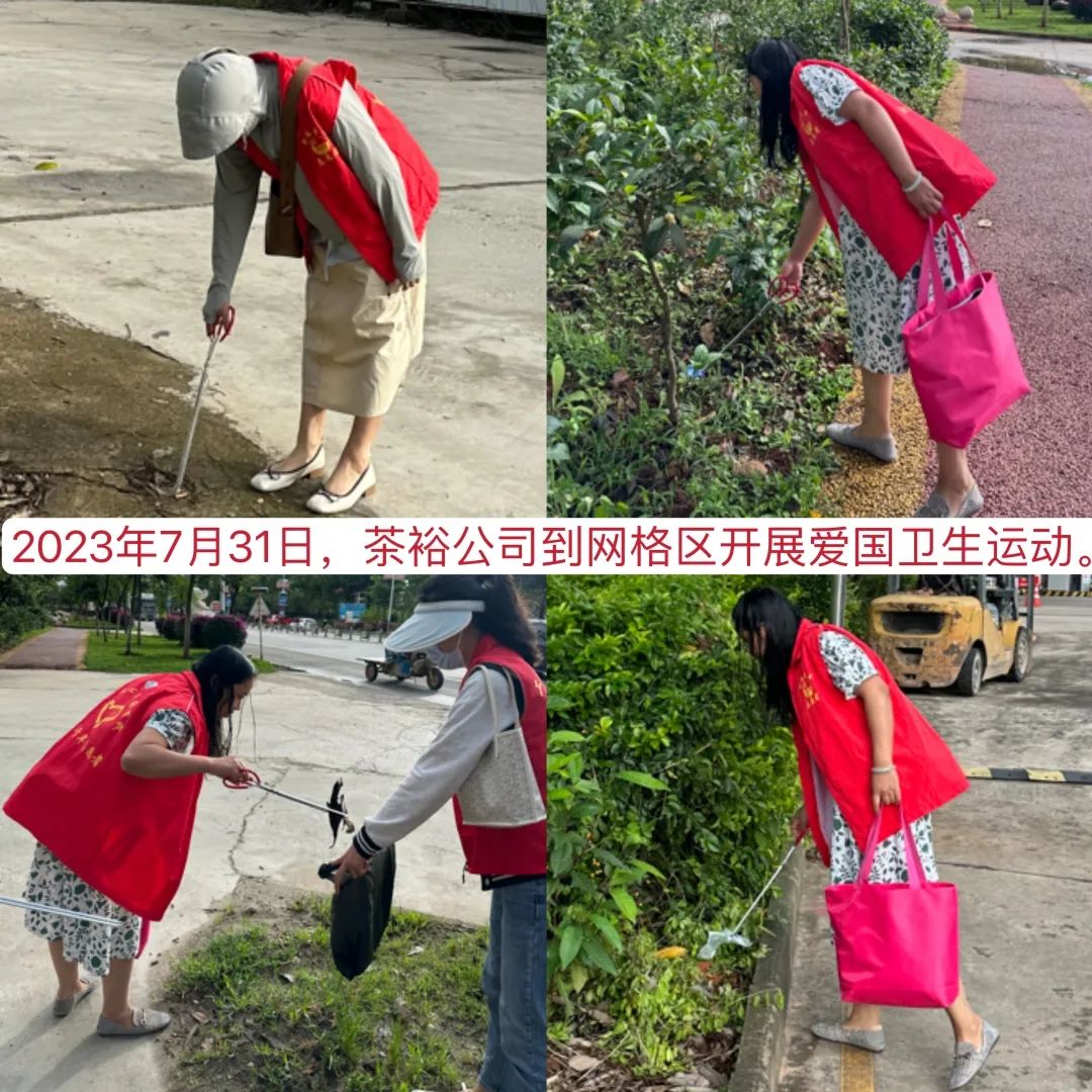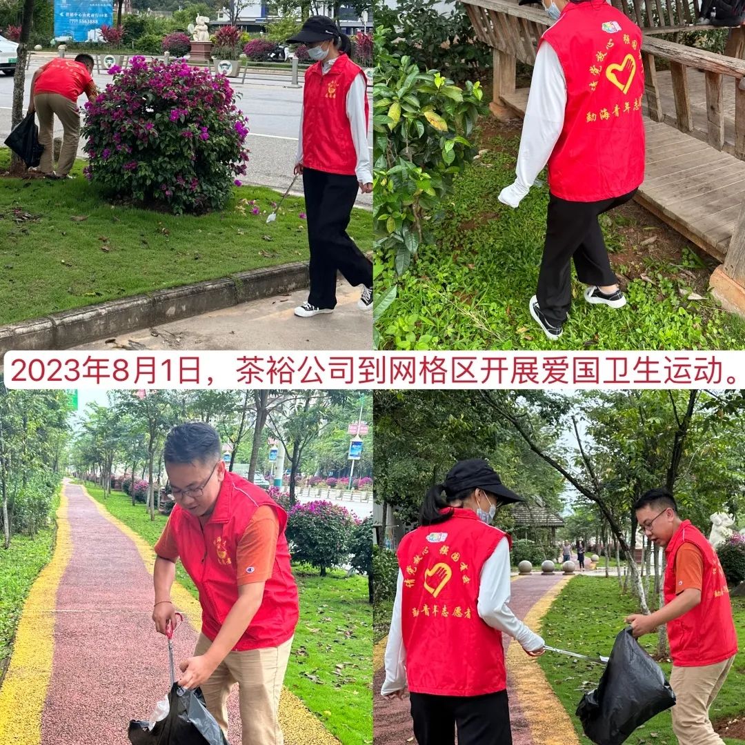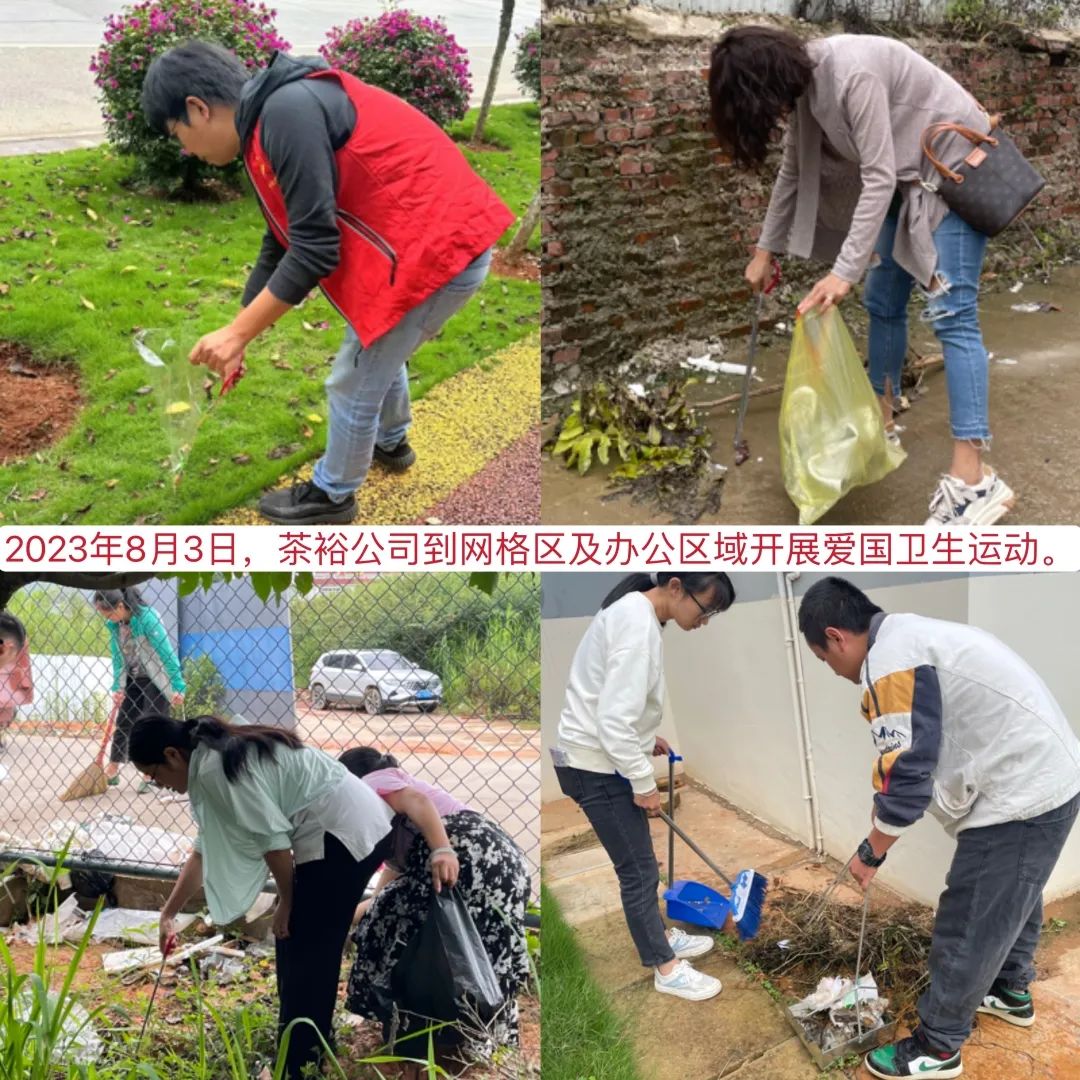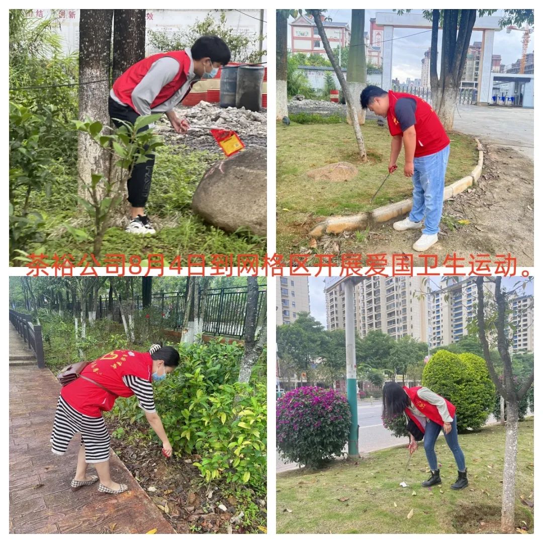 为持续推动爱国卫生运动深入开展,营造居民良好的生产生活环境。7月31日至8月4日,勐海茶裕产业发展有限公司积极组织干部职工50人次到网格区和办公区域开展爱国卫生运动,形成“营造清洁美好家园”的良好氛围。