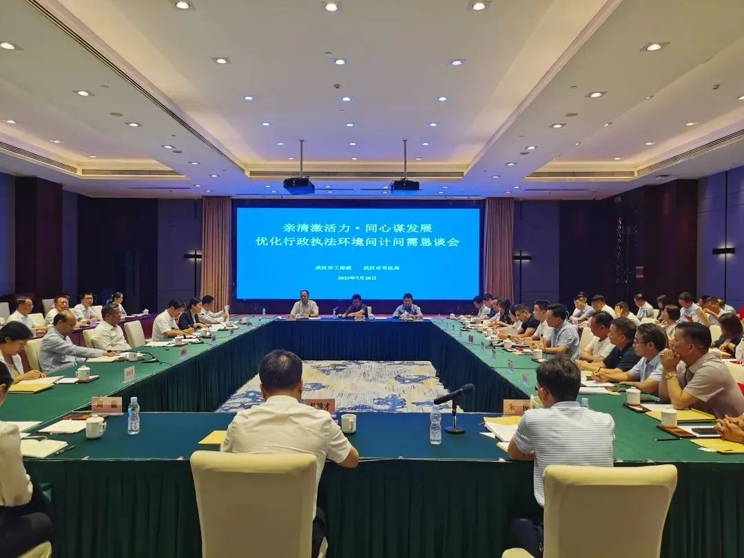 7月28日,武汉市司法局、市工商联联合举办“亲清激活力·同心谋发展”优化行政执法环境问计问需恳谈会暨行政执法监督联系点授牌仪式。武汉市首批24个涉企行政执法监督联系点挂牌成立,21名民营企业家受聘为首批涉企行政执法业务监督员。