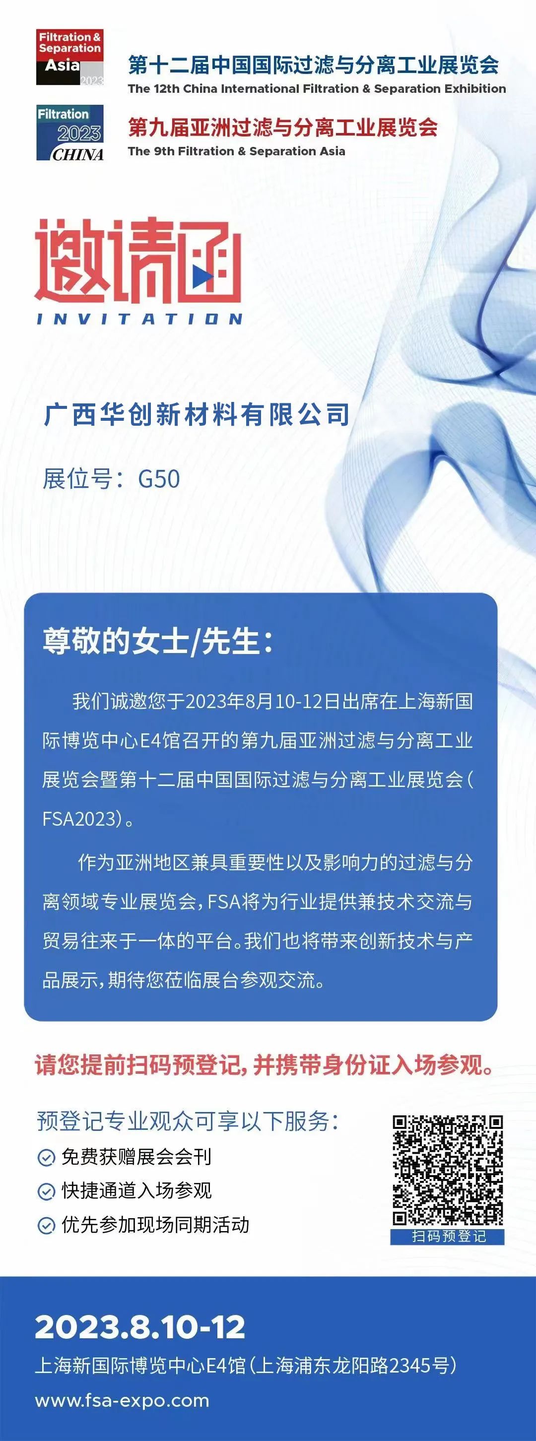 广西华创将在G50展位真诚地期盼您的参观,恭候您的到来!