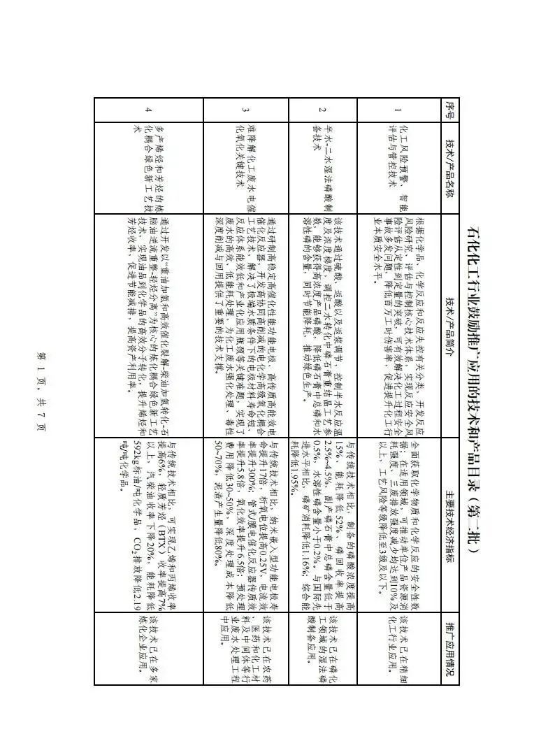 为落实《关于“十四五”推动石化化工行业高质量发展的指导意见》,推动石化化工行业高端化、智能化、绿色化发展,经地方及相关单位推荐、专家评审和对外公示,现将《石化化工行业鼓励推广应用的技术和产品目录(第二批)》予以印发。请各地工业和信息化主管部门加大宣传推广和政策支持力度,推动石化化工行业转型升级。