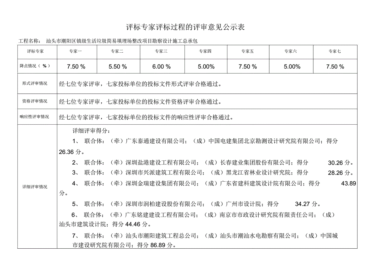 标包A:山东天诚国土规划设计院有限公司(96.0、96.0、100.0)、山东同晟建设工程有限公司(66.88、66.88、70.88)、山东国地水利土地勘察设计有限公司(74.9、74.9、80.9)