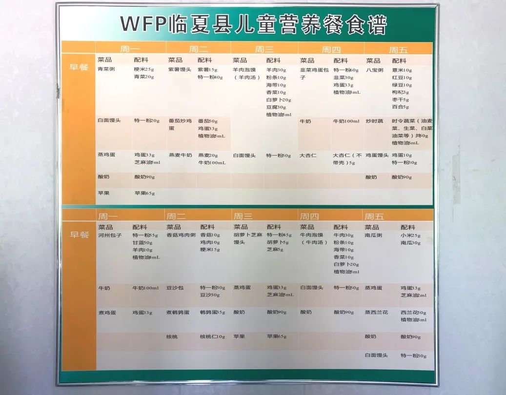在项目启动之初,项目团队先行完成了基线调查,根据基线调查结果,由营养专家提出每一种营养素对应的食材清单,围绕本地食材可供给性,设计制定季节性食谱若干套。为全力实施好试点项目营养供餐工作,马志慧的公司设立了专门的营养餐配送办公室,建立了集采购、加工、质控和配送于一体的“中央厨房”,并按照营养餐食谱集中加工营养餐后,及时将营养可口的热乎乎的饭菜配送至项目幼儿园的餐桌上。截至目前,企业已为8所项目幼儿园的1700多名学龄前儿童提供了两年多的营养早餐。