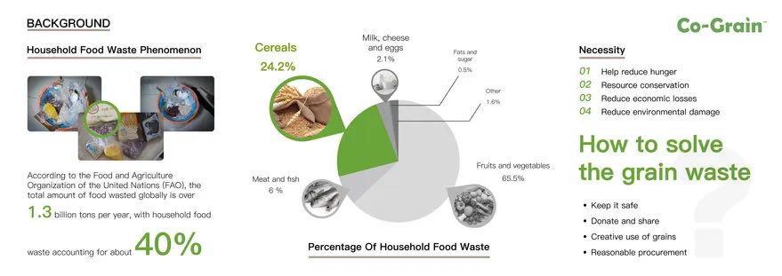食物浪费已成为当今世界的一个紧迫问题,而家庭是主要原因之一。仅在美国,约25%的家庭购买的食物被浪费,导致数十亿美元的经济损失和重大的环境影响。家庭食物浪费的主要来源之一是谷物,通常用于早餐谷物和其他食物。谷物包装的处理也造成了浪费问题。