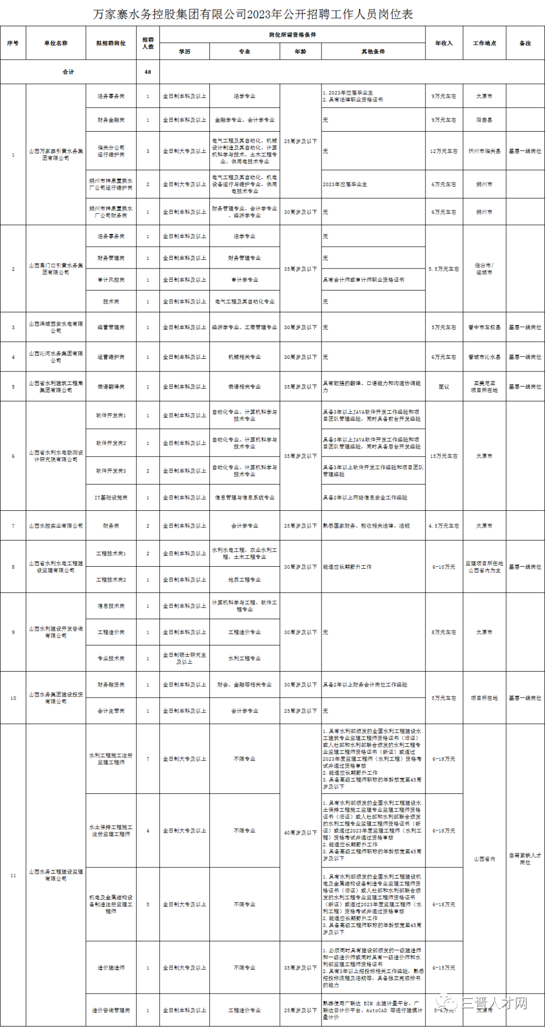 根据集团公司业务发展需要及用人需求,现面向社会公开招聘集团公司所属企业11户29个岗位,共计招聘48人。各用人单位公司简介见附件1。