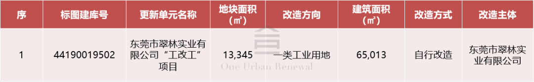 2、东莞市工改工项目“1+N总体实施方案公示”项目1个。
