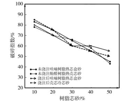 3.2.4 芯砂对破碎指数的影响