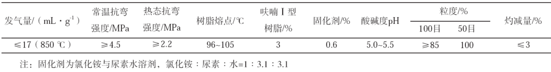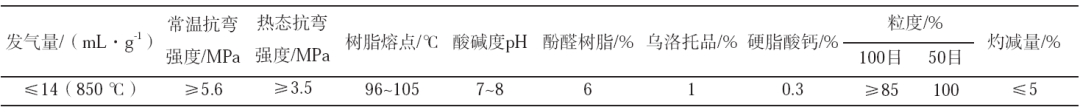 表5 酚醛树脂壳芯砂性能指标