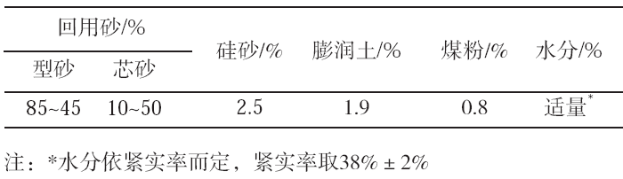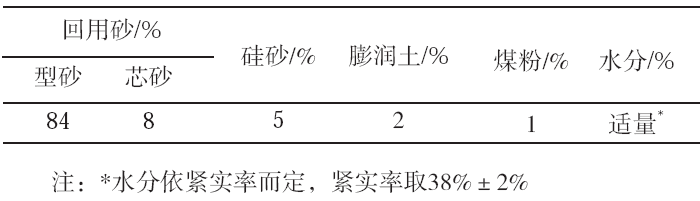 表6 混砂工艺试验用型砂配方