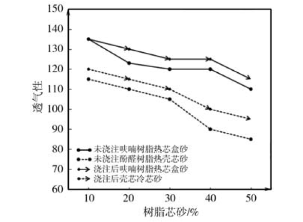 图9 芯砂对透气性的影响
