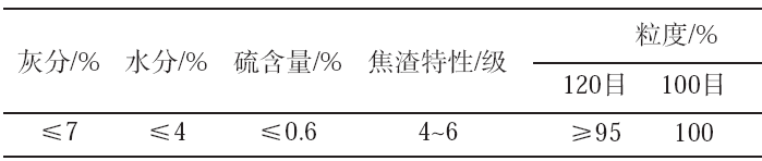 表3 煤粉性能指标