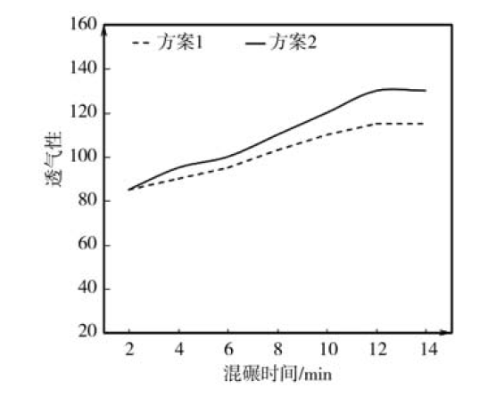 图3 混砂工艺对透气性的影响