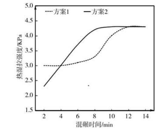 图1 混砂工艺对热热湿拉强度的影响
