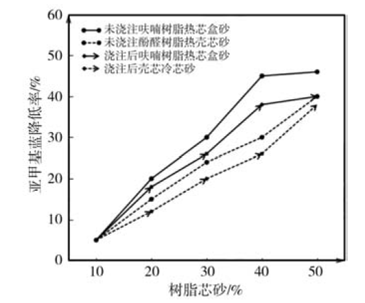 图8 芯砂对亚甲基蓝降低率的影响