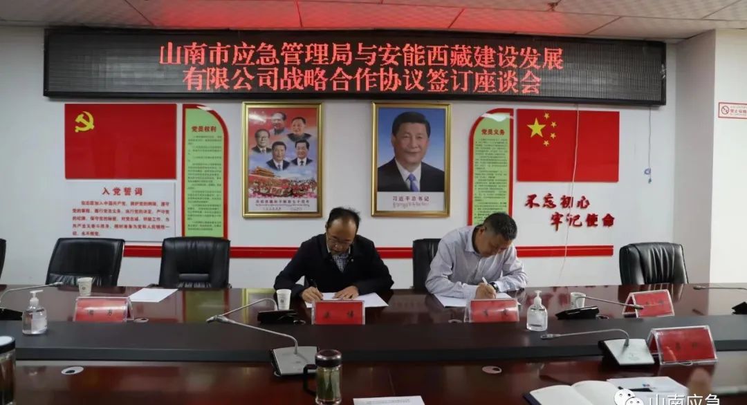 为进一步提高全市应急抢险救援能力,8月4日,市应急管理局与安能西藏建设发展有限公司召开座谈会,观看了中国安能集团第三工程局有限公司宣传片,签订了《山南市应急管理局 安能西藏建设发展有限公司应急抢险救援领域合作共建协议》,共同商讨了今后合作共建具体事宜。市应急管理局党委副书记、局长渠伟出席会议并讲话。市应急管理局党委委员、副局长王洪波主持会议。安能西藏建设发展有限公司党委书记李波,副总经理谢海先等相关负责同志,山南市地震局副局长吕琳,市应急管理局相关科室负责同志参加会议。