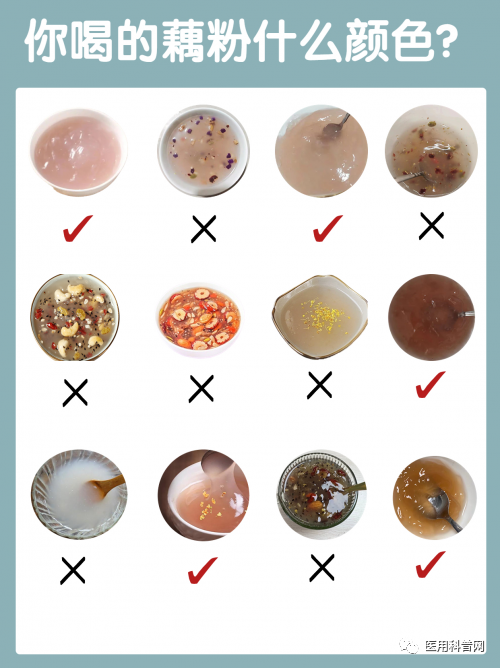 【劣质藕粉】冲泡后呈现其他颜色,比如白色、黄色、紫色
