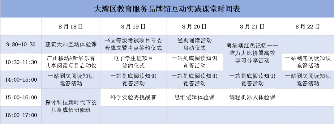 (大湾区教育服务品牌馆互动实践区活动安排表)