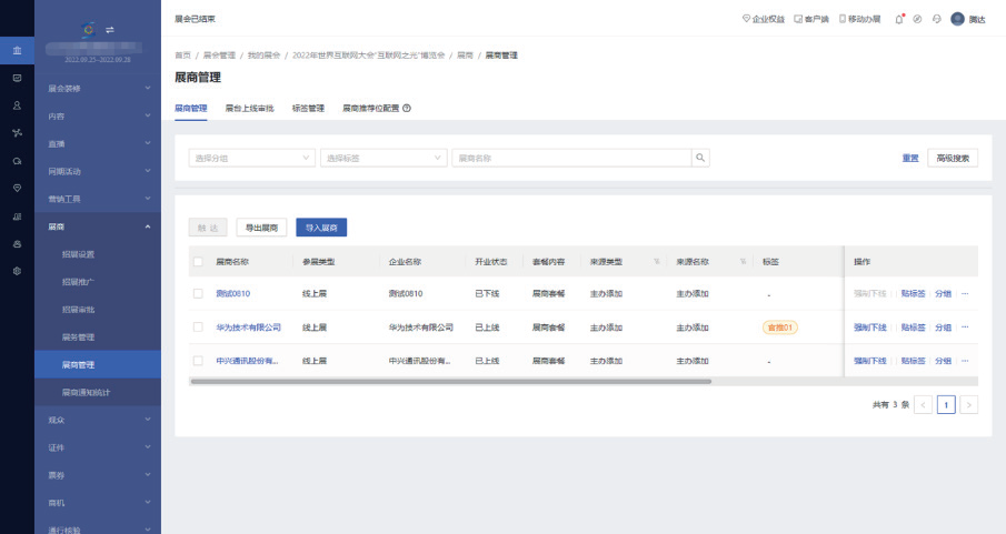 四是展商展示功能,通过展位一键创建、快速装修、展品上架管理、实时直播发起等功能帮助展商全面展示企业及展品特点。