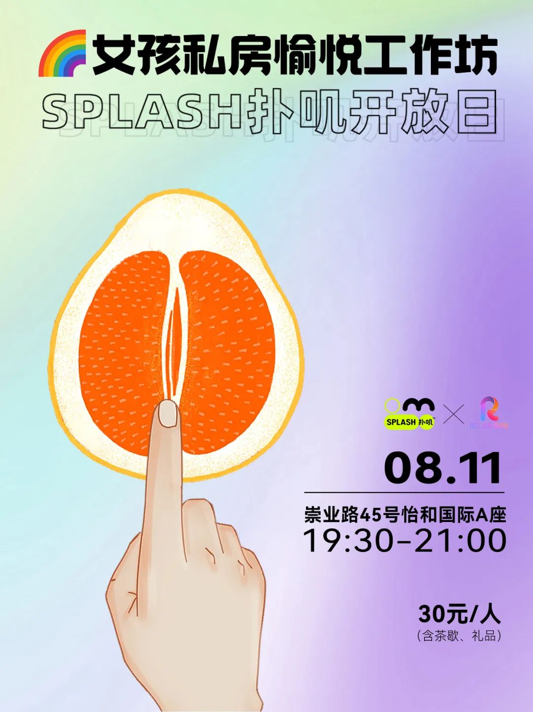 ·本次活动酒水茶饮免费,报名费30元,将全部捐赠Relax空间建设