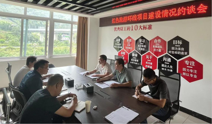 为加快推进红色旅游环线综合提升改造项目、兴文世界地质公园(太安园区)建设项目,县文旅集团公司与四川省第十一建、中交天航南方交通建设有限公司相关负责人共同会商项目推进。