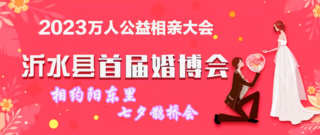 沂水县首届婚庆行业博览会暨万人公益相亲大会来啦!8月16日至8月22日(农历七月初一到初七)在阳东里隆重举行,期待你的到来。