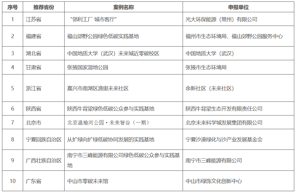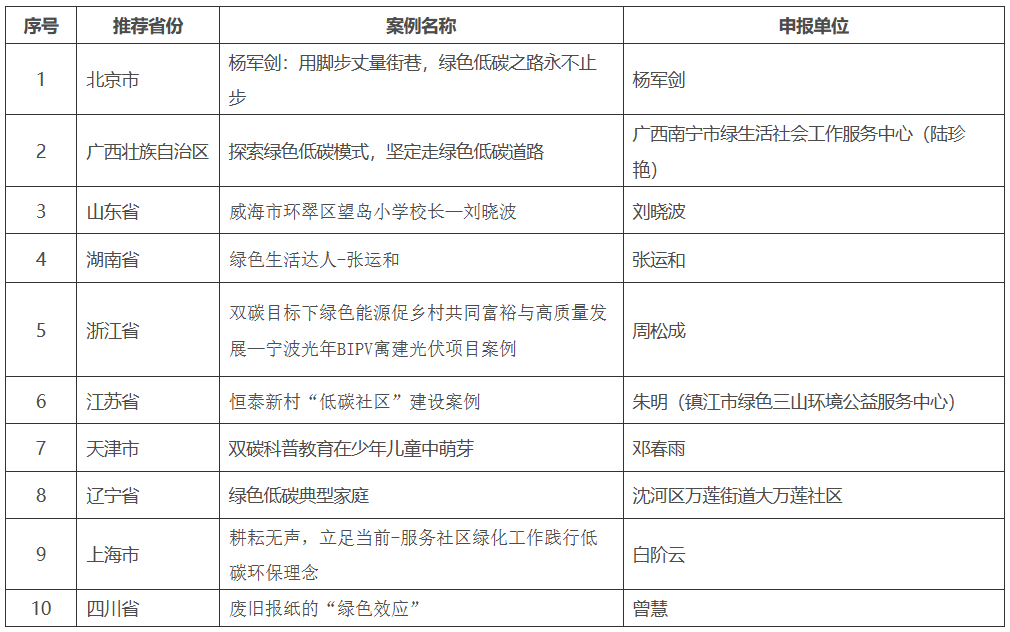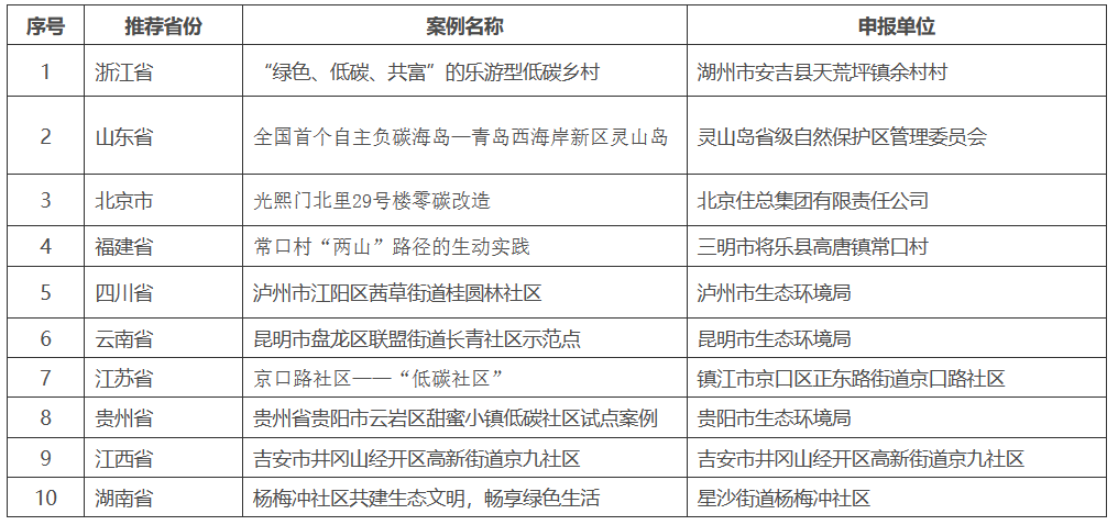 为深入贯彻习近平生态文明思想,进一步促进全社会提升绿色低碳意识,生态环境部在2022年“全国低碳日”主场活动上启动了系列典型案例征集活动。经过各地组织推荐、专家审议、公示等环节,现已产生2022年绿色低碳典型案例入选名单。