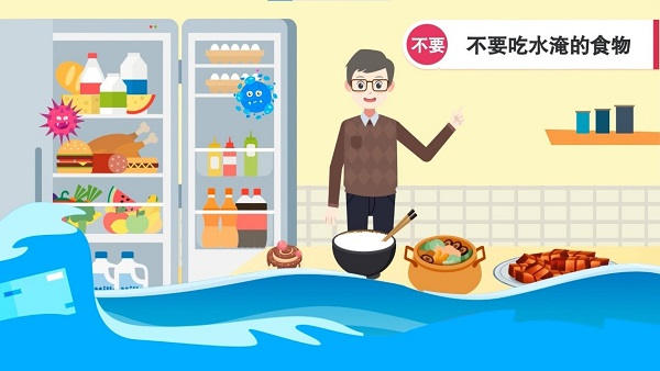 不要吃水淹的食物。被雨水淹泡过的食物容易被污水中的微生物污染,腐烂变质,食用后极易发生食物中毒。为了保证安全,遭到水淹的食品最好丢弃,不要食用。特别要注意冰箱内的食物,若冰箱已遭雨水侵入,或曾经停电,食品最好丢弃不用。