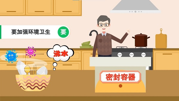 要加强环境卫生。强降雨后,蚊蝇、老鼠等有害生物孳生增多,其携带的病原体可污染食物和水源,造成食源性疾病发生。要做好防蝇防鼠工作,避免昆虫、害虫、及其它动物进入厨房和接触食物,可将食物盖好或存放于密封容器中,保证垃圾桶盖严并定期清除垃圾,保持家中动物远离食物制备区等。