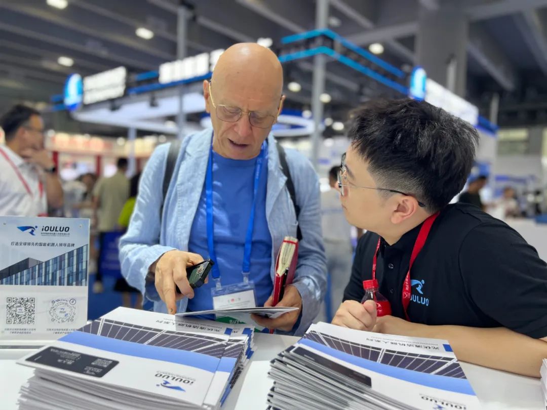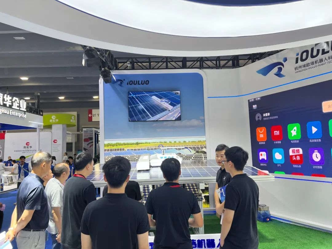展会上,埃欧珞全新推出的RS-PSP-02自动式光伏清洁机器人吸引了众多参展者驻足围观。