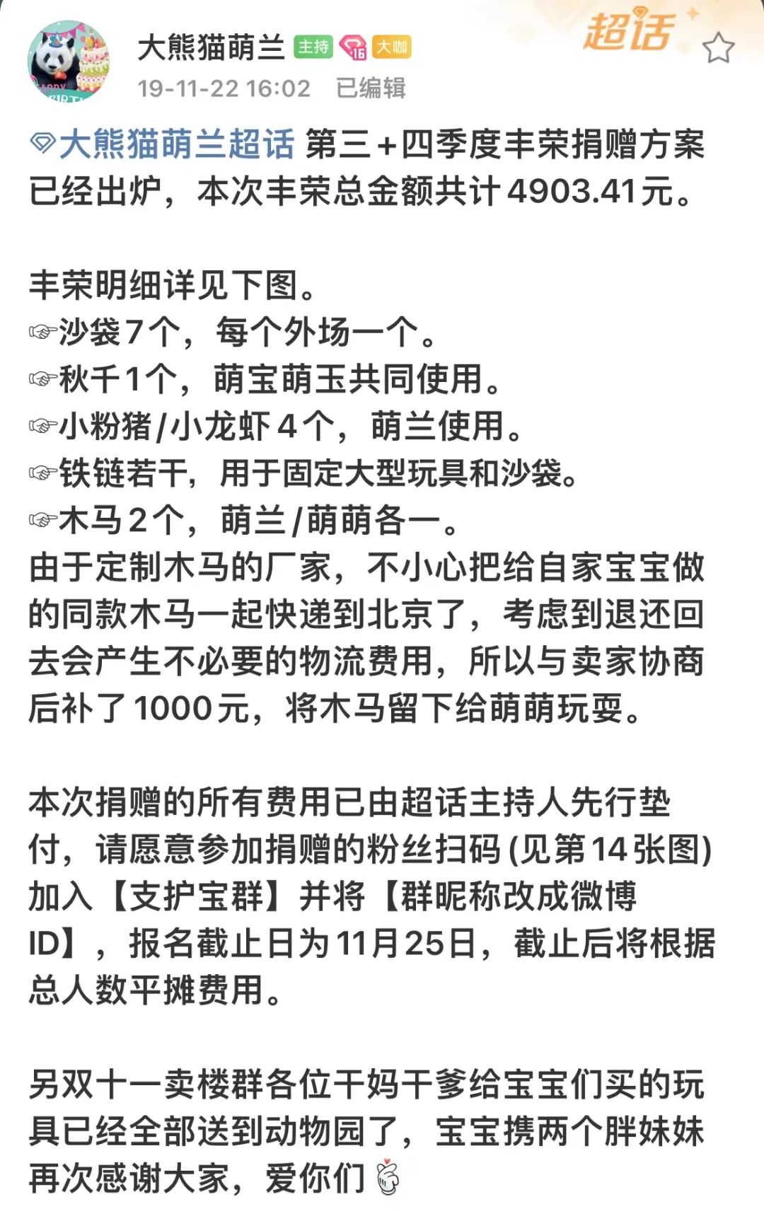 2019年某次捐赠的说明