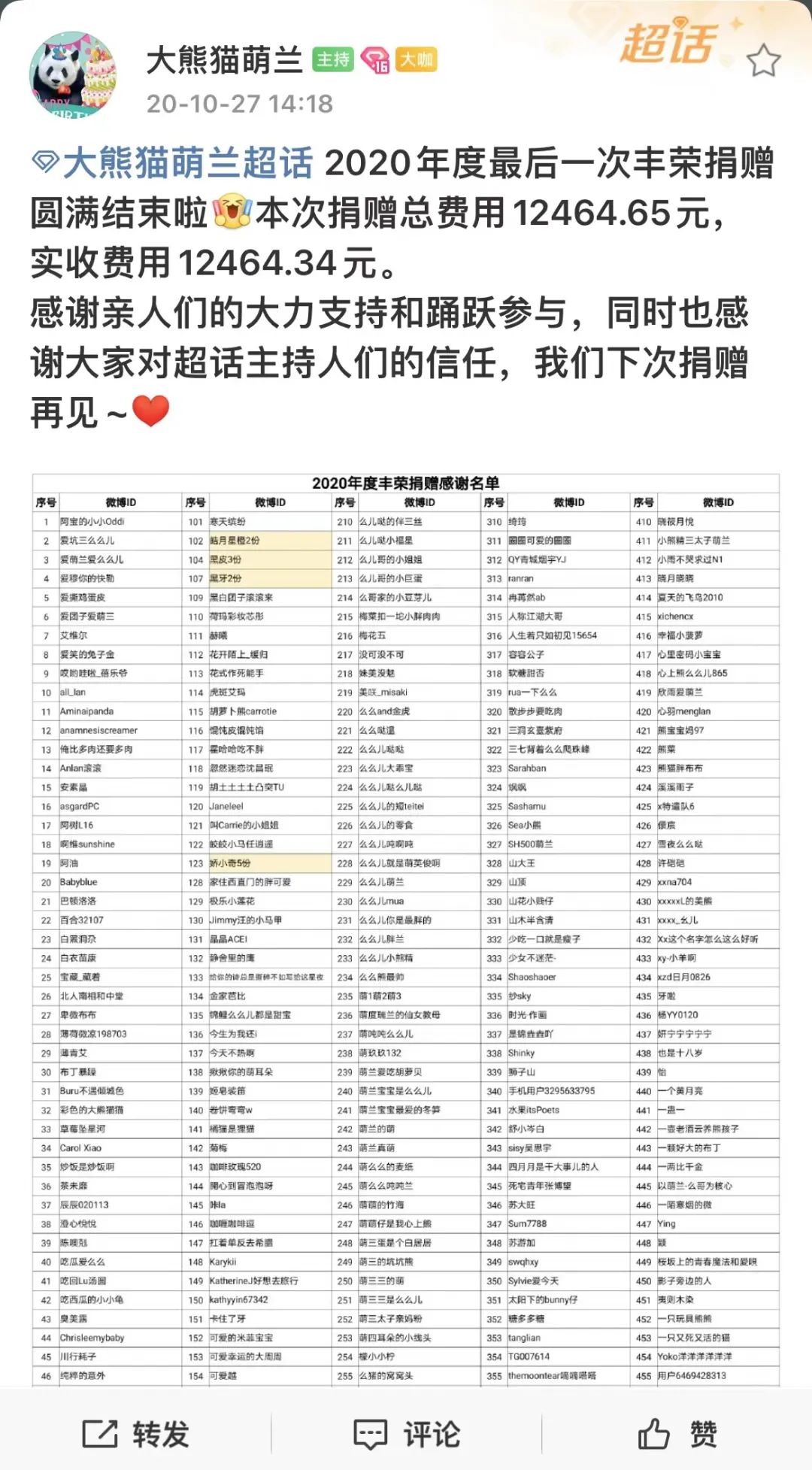 最后一次捐赠的捐赠者名单