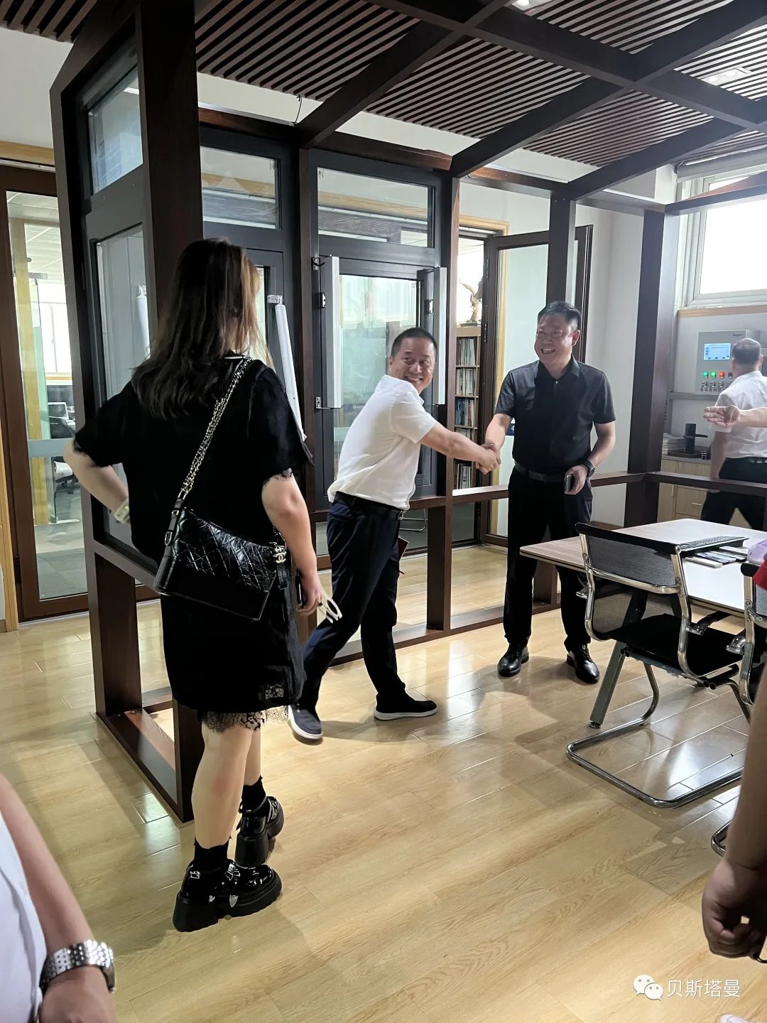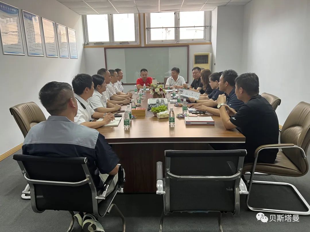 2023年8月8日下午,苏州华天幕墙装饰工程有限公司孙曙光总经理、张永梅总率公司技术核心团队一行前来我贝斯塔曼公司进行实地参观考察交流。