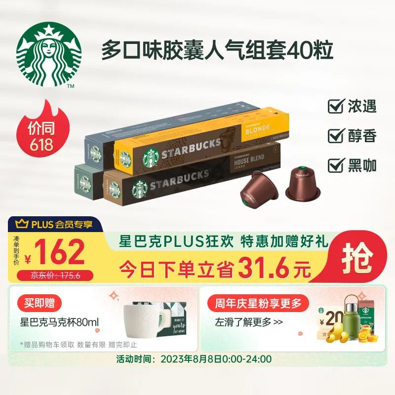 星巴克(Starbucks)Nespresso浓遇胶囊咖啡 人气精选套装4条装 瑞士进口