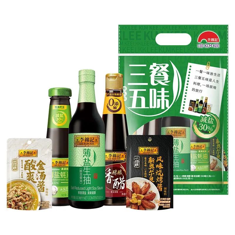 李锦记三餐五味套装 薄盐生抽酱油+蚝油+香醋+金汤酱+烤肉酱